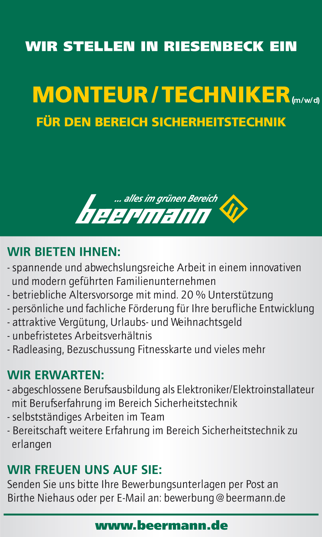 Standort: Riesenbeck, Ibbenbüren, Hilter oder Greven