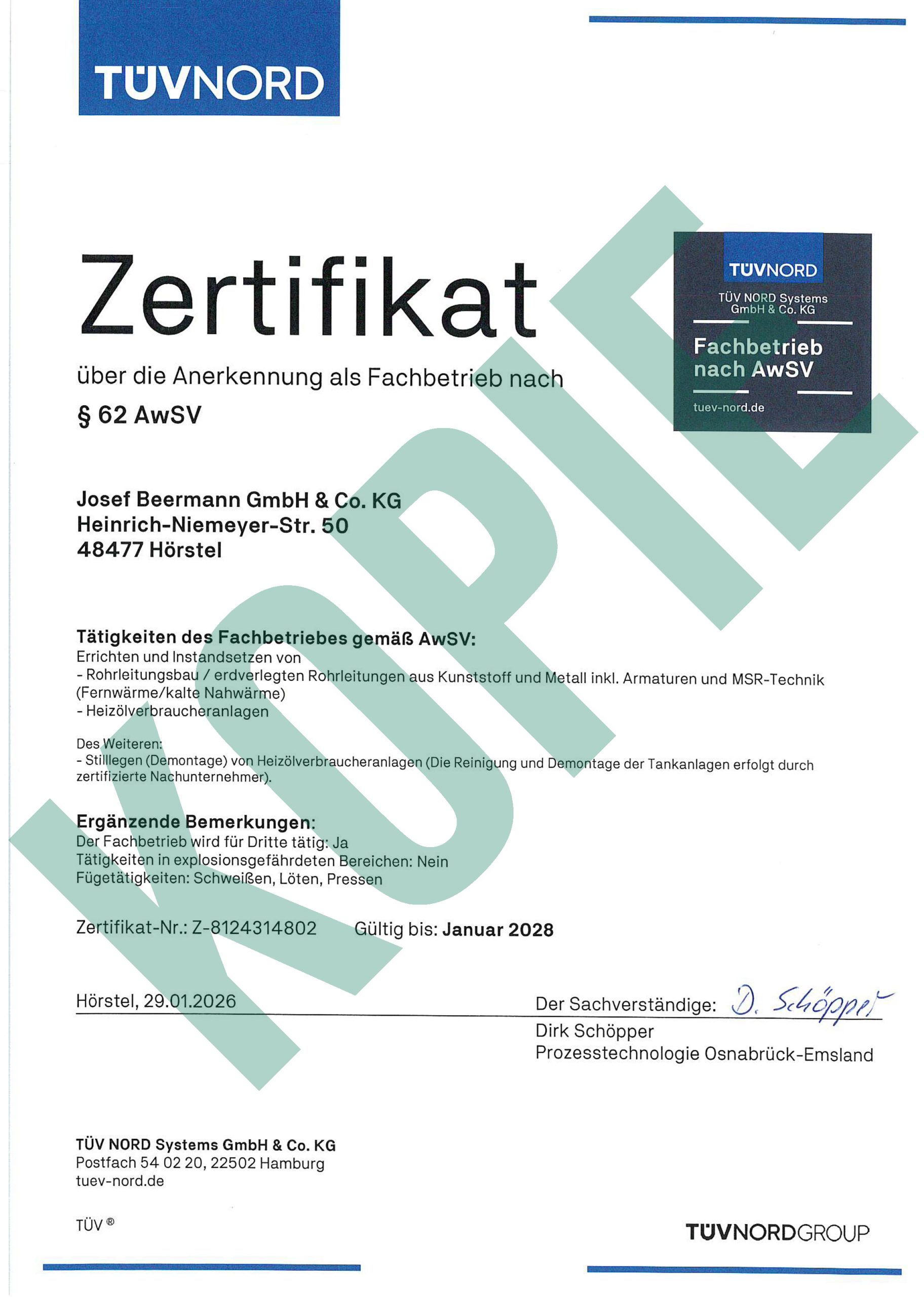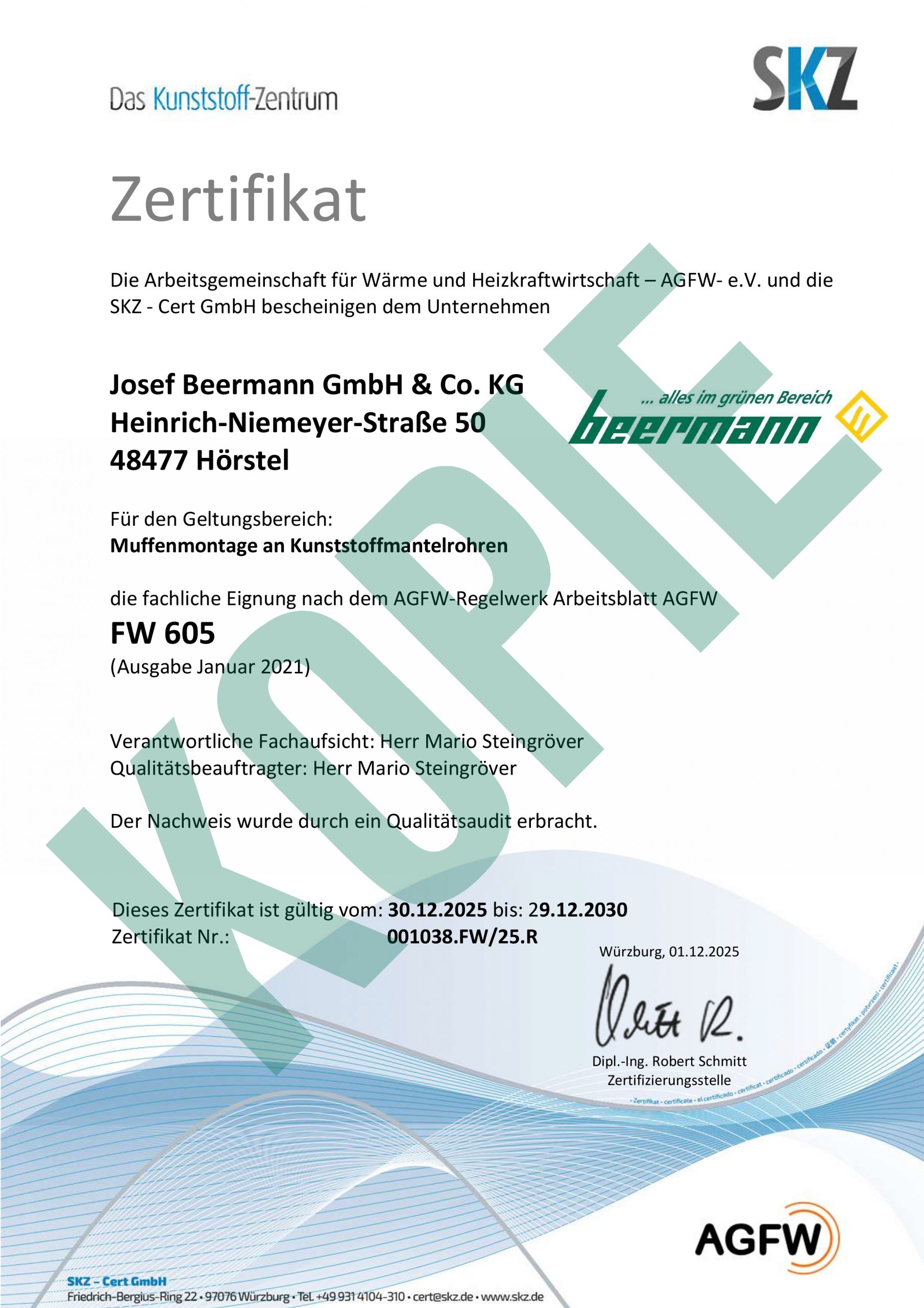 Wenn Sie diese Zertifikate im Original benötigen, melden Sie sich bei Ihrem Ansprechpartner oder unter info@beermann.de